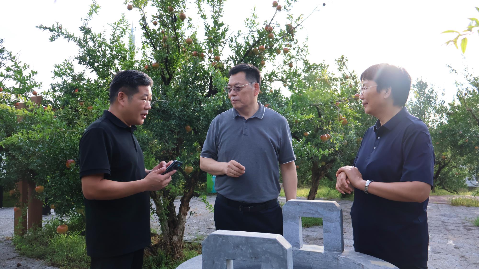 8 月 23 日下午,明清石榴园内,600 年树龄的 "镇园之宝" 枝繁叶茂,饱满的石榴果缀在枝头。北京林业大学林木资源高效生产全国重点实验室主任安黎哲带领专家组一行,在淮北市副市长陈英和淮北市副秘书长程荣…