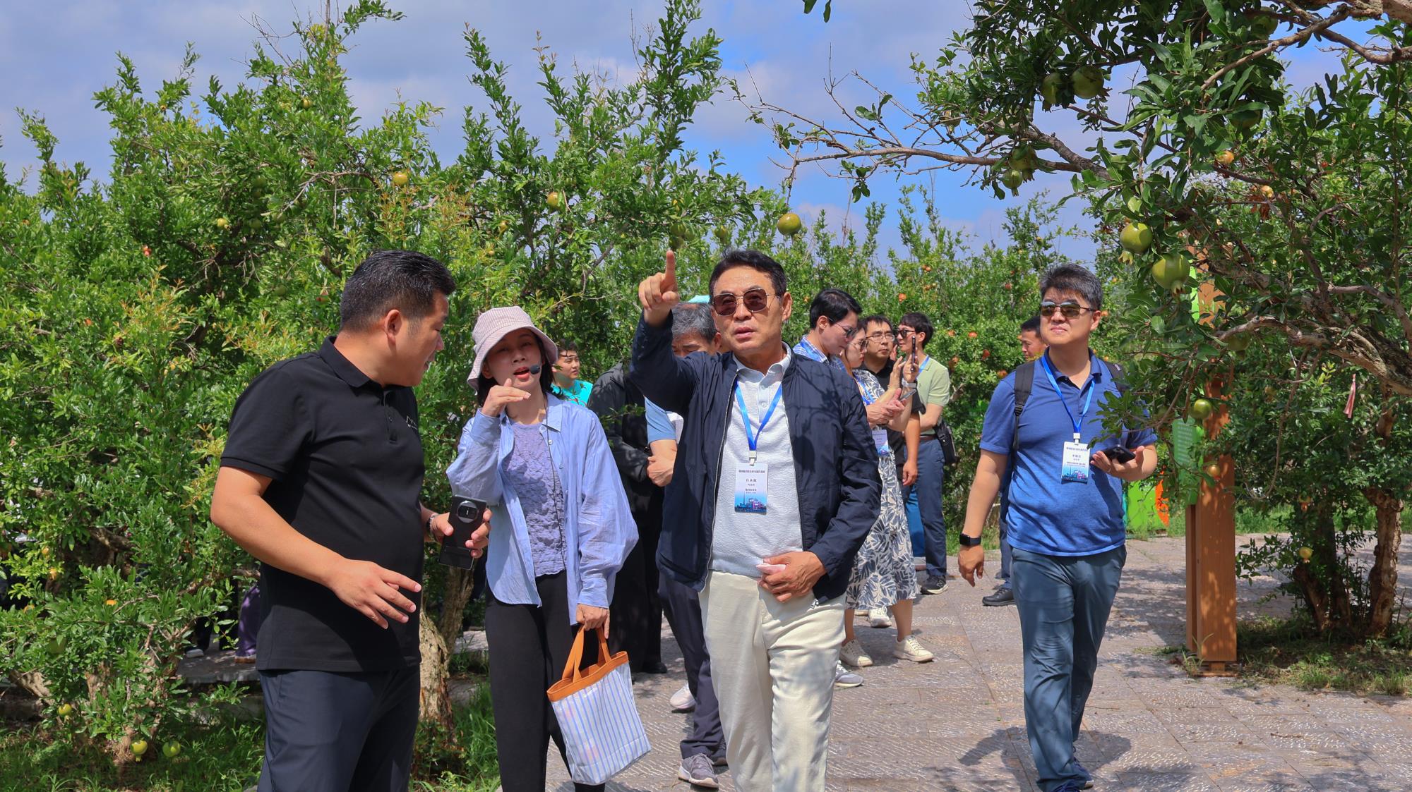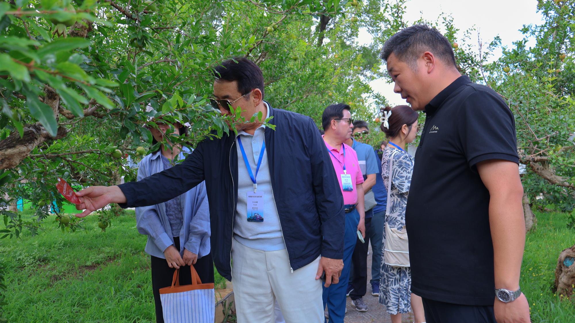 作为淮北的一张生态名片,明清石榴园以其悠久的种植历史和独特的石榴文化吸引了代表团的目光。园内古树苍劲,果实累累,市长一行在主理人邵景卫的带领下,详细了解了淮北石榴的品种特点、栽培技术及产业价值。