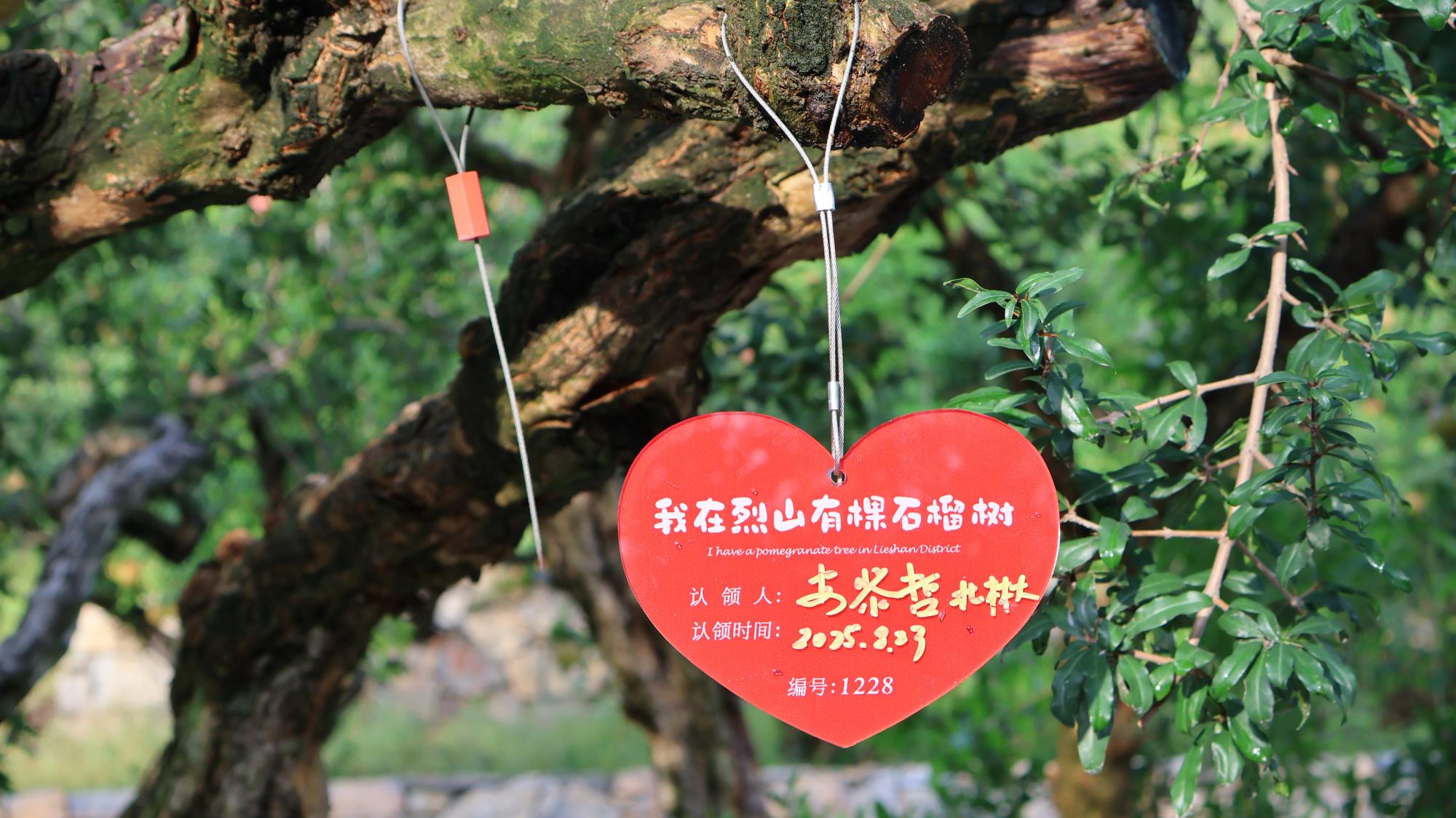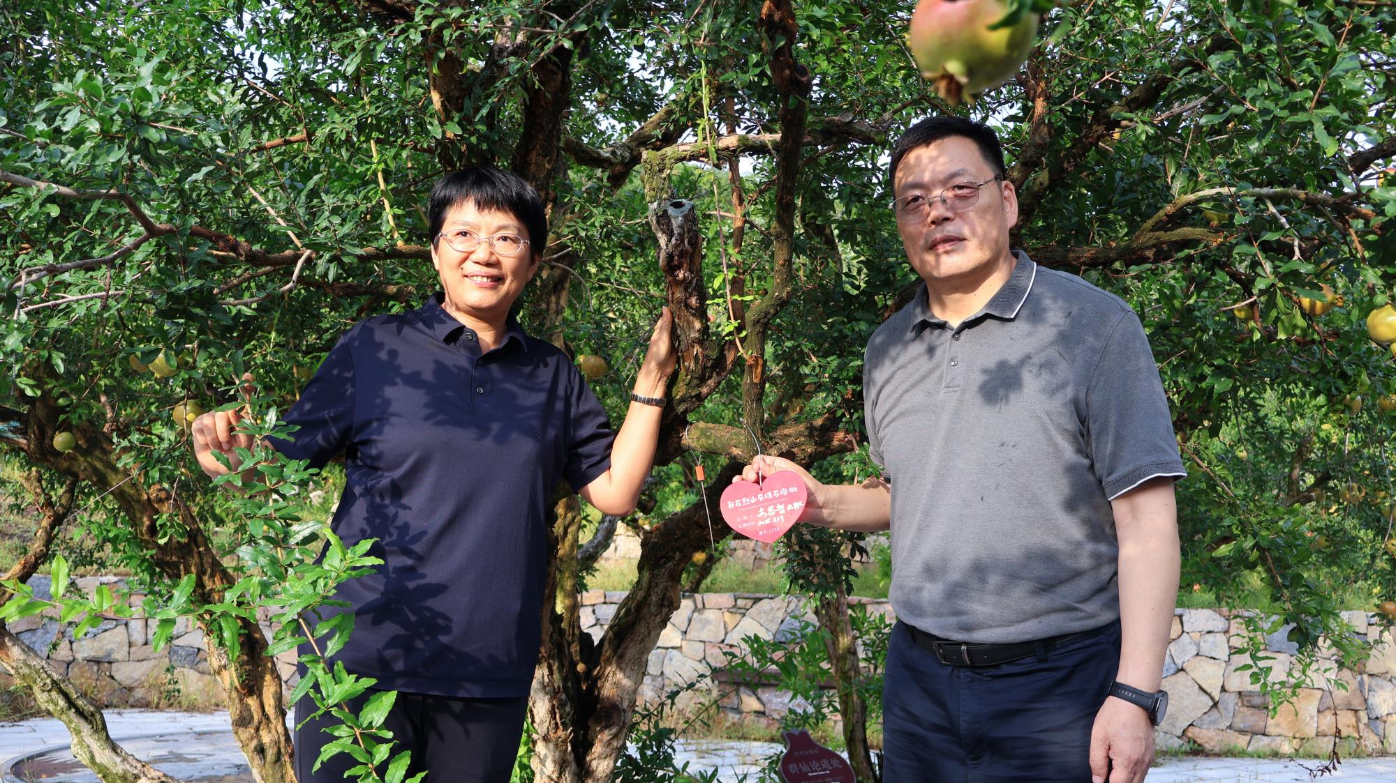 安黎哲仔细察看古树生长状况,对石榴园 "注重文化传承" 的保护理念给予高度评价。并在‘群仙论道处’350年古石榴树上挂上的专属于自己的爱心牌,成为了古树认领人,以身作则的起到了保护古树名木的带头作用。随后北林大调研组成员纷纷效仿,认领古树,参与到古树保护的行列中。